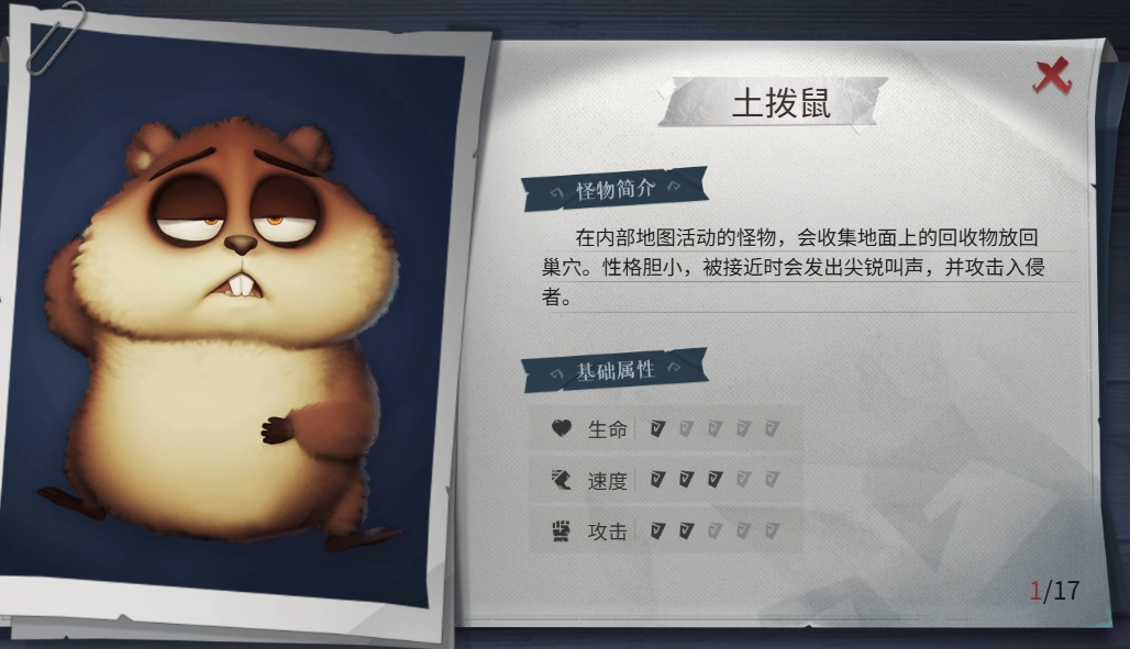 鼓狮:鼓状态没有攻击性但是无敌,攻击前会敲鼓节奏逐渐急促,变身后速度快攻击不到高处的玩家,会攻击其他玩家,需要和队友通报(萌新不报点会坑队友需要站在二级高度蹲下打或三级高度站撸可关门杀)。