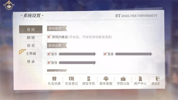 左上角第一个图标是设置,在设置里能退出账号、绑定手机;礼包码兑换以及调整音量、选择出行配音(普通话或日语)等常用设置,都可以在常用选项中找到。