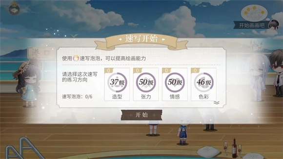 每次速写只能选定一个地点进行创作。速写前的元素收集,既可以点击右上角的一键收集功能快速获取,也能在场景中自行慢慢探索积累。使用速写泡泡能够为各类经验以及画技经验带来提升。