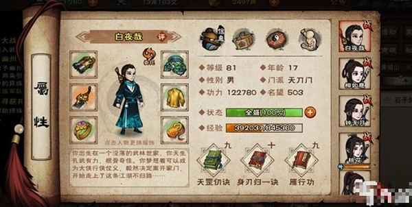 角色面板:能够查看角色的等级、属性、装备、武学等相关信息,便于掌握角色的成长状况。