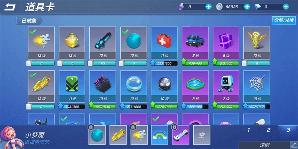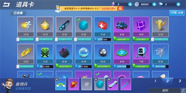 初始状态下开放六张基础道具卡,更高阶的道具卡需要达到指定段位方可解锁。