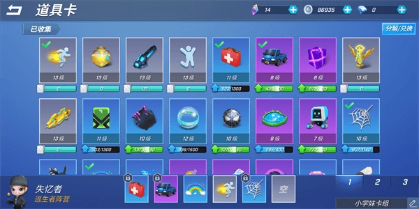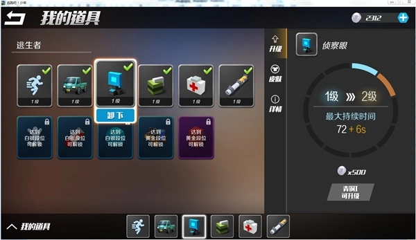 小学妹的配置是皮卡、飞爪、医疗箱、魔法墙、疾跑,其中前三个是锁定的。