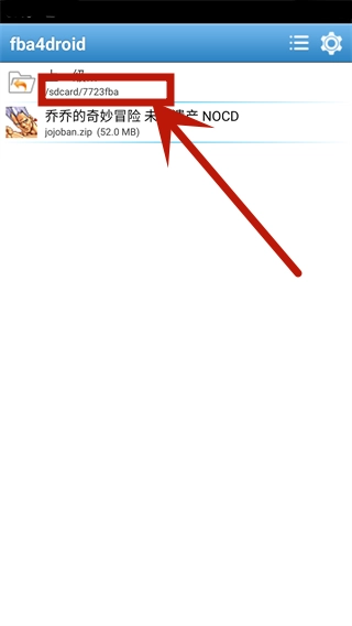 进入fba4drioid后,点击左上角的“返回上一级”按钮,然后在目录里找到7723fba,就能看到乔乔的奇妙冒险未来遗产 NOCD的压缩包了。