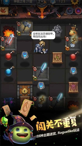 寻找并提升更强大的史莱姆英雄来助力你的探险,其中包括魔法师、剑士、奥丁神、吸血伯爵等角色。