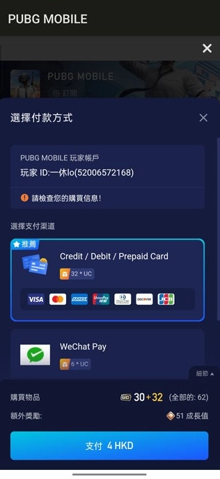 接着就会再次跳转到PUBG MOBILE的商店,各位小伙伴可以在这里再次修改需要充值的面额。