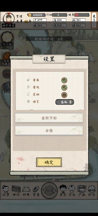 科举:能带来较为稳定的经济收益。大体上每次参加考试都能成功考中,考试形式里没有选择题,到了时间点选择备考或者直接参加考试,系统会自动判定考中。