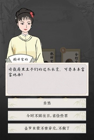 议事系统设计:玩家可自主选择事件的处理方式,不同选项对应不同的数值增减效果。处理单个事件需消耗1000金,且事件存在重复触发的可能。考虑到开局仅3000金的初始资金不算充裕,玩家可以选择暂不处理事件(无负面后果),优先通过购买世仆和产业来积累财富。