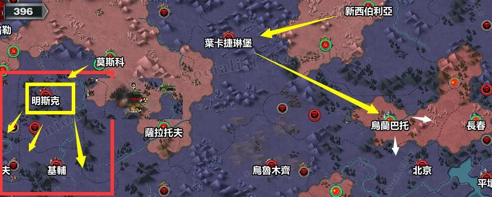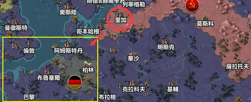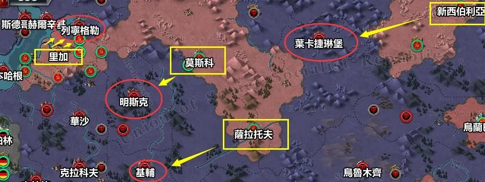 苏联主要战场周边分布着高级工厂,能够补充战斗中损耗的兵力,从而维持部队的战斗能力。