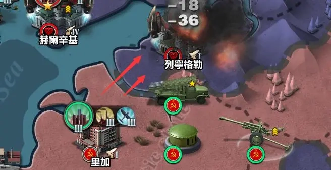 在里加周边部署的野战炮与火箭炮部队将向北推进,对列宁格勒发动攻势;油田区域的特种兵部队也会同步北上,但不采取主动攻击行动,主要发挥吸引并牵制敌方火力的作用。加里宁格勒的超重型坦克需保持原地部署,同样不主动发起攻击,以牵制敌军为任务核心;战列舰则无需对敌军目标实施打击,转而对未被敌军占据的城市的城防设施展开进攻。
