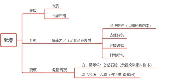 高等级武器可通过检索或纯能馈赠达到30级获取,其升级与突破素材的获取途径如下: