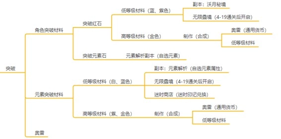 角色的阶段性突破,需要用到角色突破材料以及与角色对应元素的突破材料。低等级的这类材料可以从副本中大量获取,高等级材料则需通过低等级材料合成得到。关于这些材料的具体获取途径,可参考下方内容: