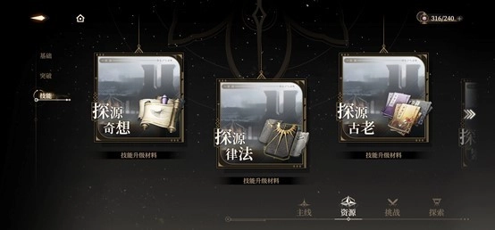 提升技能需使用技能经验书,不同角色适配的技能书类型各异。若要获取对应技能经验书,可依据角色需求,前往资源板块的技能副本,选择匹配的探源副本参与战斗。