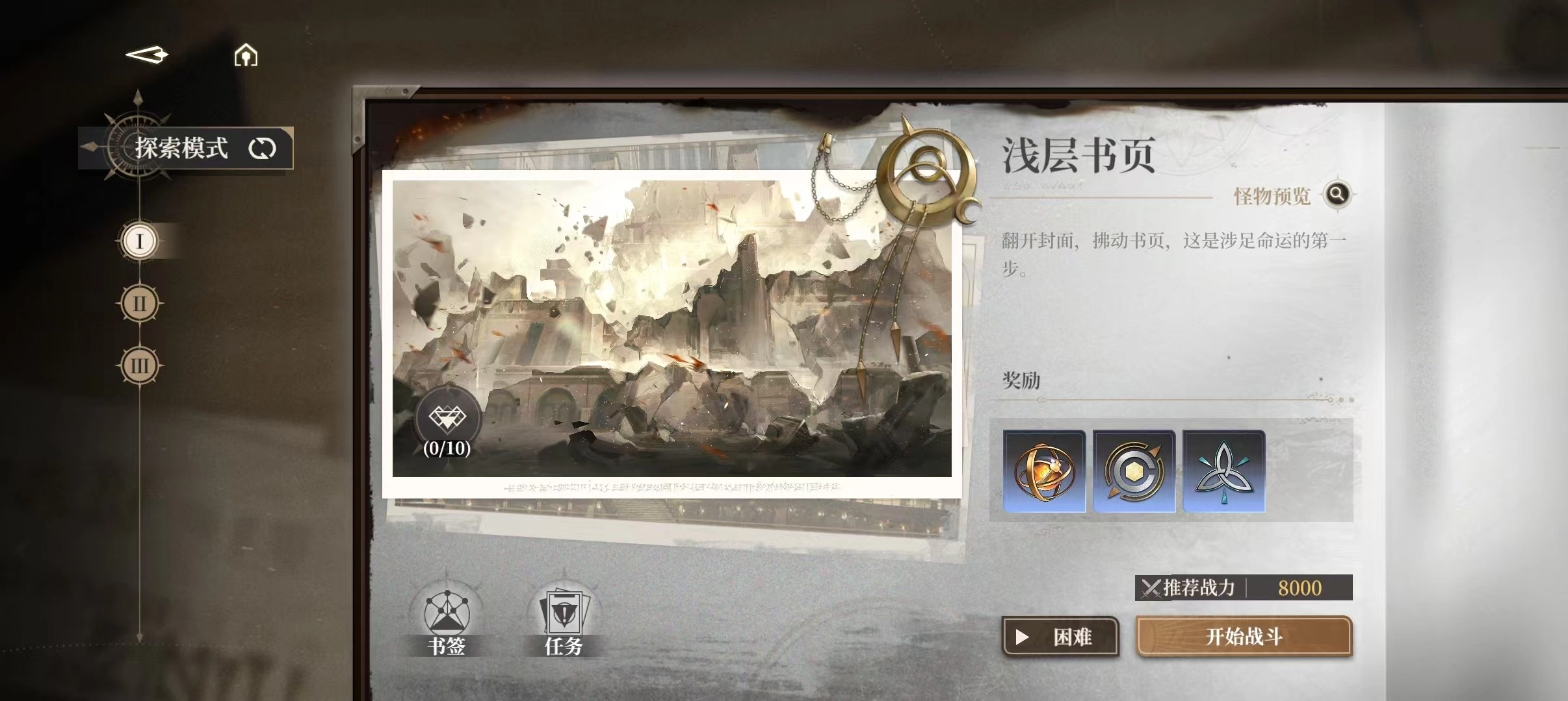 古痕的获取途径为:通过开启战斗-探索-命运之书这一流程获取。该关卡属于肉鸽模式,简单难度通关后可获得货币与一定数量的一孔古痕,困难难度通关则能得到一定数量的三孔古痕和一孔古痕。需要注意的是,简单模式和困难模式通关后都需要消耗体力才能领取奖励,两种模式下掉落的货币数量相同,仅在古痕的掉落情况上存在差异。
