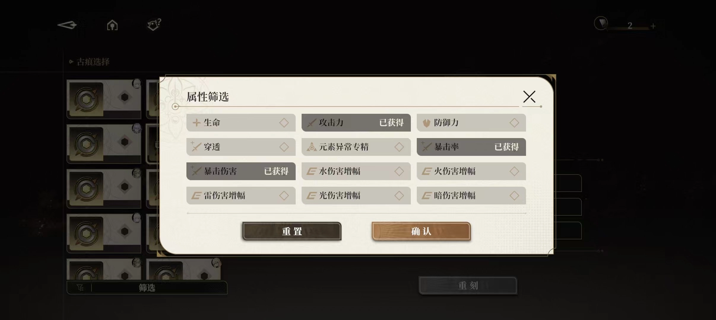 不同角色所需的古痕词条各有差异,但游戏内角色的古痕界面会贴心地给出古痕种类推荐,这些推荐基本靠谱,大家可以放心按照推荐去刷取;至于具体要刷什么属性的词条,那就因人而异、见仁见智了。