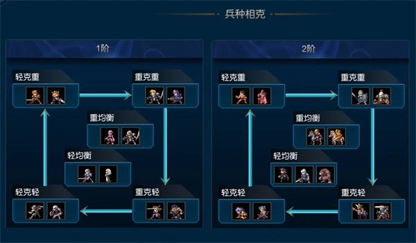 兵种无法提升,但英雄能够升级,像英雄的等级、装备槽、技能等级都可以提升。例如英雄等级满级为30级,达到30级的英雄会变成紫卡;技能分为三个阶段,每个阶段有5颗星,技能满级为三阶5星,技能满级的英雄会变成金卡,这些都是相当关键的。