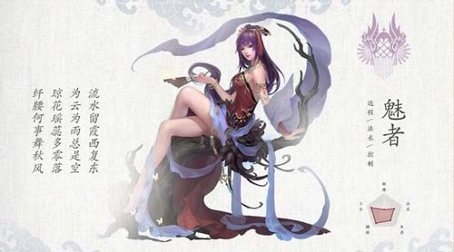 特色技能:风摇筝,年少时曾接受东厂的训练,擅长以媚术迷惑他人。东厂给魅者们种下了“噬星血咒”,一旦发作,若没有解药,便会承受万虫蚀体般的剧痛,以此来掌控魅者。摇筝接到命令去刺杀范益封,却在过程中爱上了他,宁愿忍受“血咒”的折磨也不忍心动手,然而范益封却出卖了她,让她险些丢掉性命。幸运的是,万妖宫主救了她,从此她便断绝了所有情欲。因此江湖上流传着这样的说法:如果有人看到魅者那倾城的笑容,那一定是他生命的最后一刻。