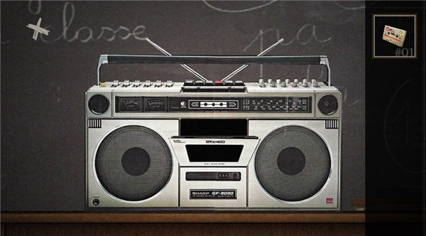 把刚刚在储物室里找到的磁带放进收音机,