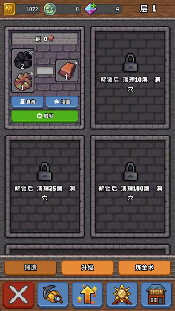 4、利用你所制作的物品来升级你的矿工,使他们的采矿效率得到进一步提升。