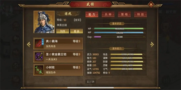 智力(精神):影响武将施展法术时所能造成的伤害量,同时也决定其在遭受法术攻击时受到的损伤程度