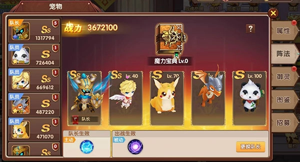 没有巴风特和皮皮的玩家,可以考虑选择同样上手容易,且觉醒后能清除debuff的潘达、具备控制技能的比卡作为替代;要是有通过招募得到更优质宠物的玩家,自然也能搭配更出色的阵容。
