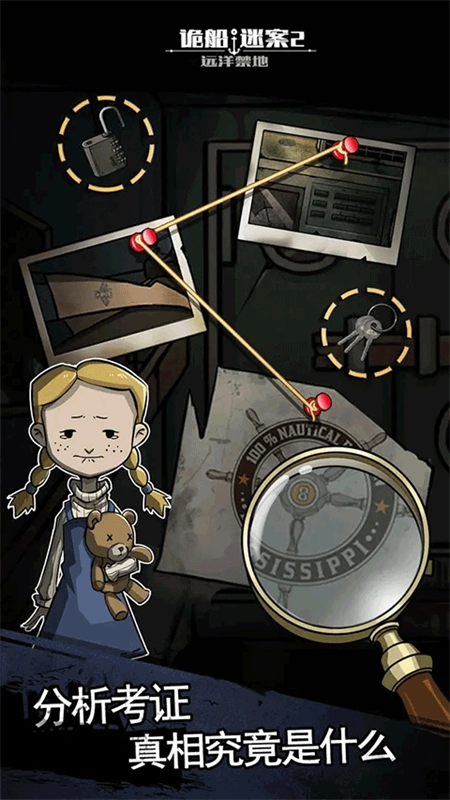 诡船谜案2是一款悬疑题材的解谜类手机游戏,改编自多部知名小说。玩家将与同伴一同在蒸汽游轮和废弃渔船上展开探索,揭开一系列诡异事件背后的真相,并将幕后凶手绳之以法。游戏以密室逃脱类解谜玩法为核心,玩家需在多个场景中探索解谜,通过挖掘关键线索拼凑出完整的线索链,从而清晰把握整个故事脉络。对解谜类游戏感兴趣的玩家,不妨前来体验一番!