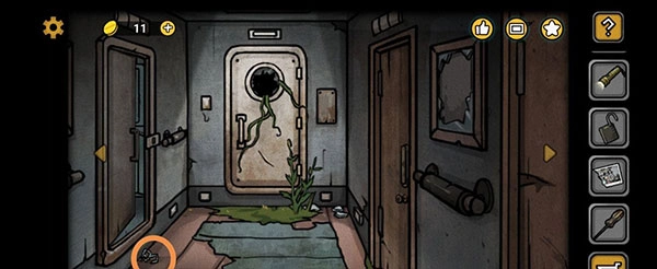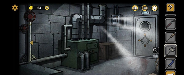 走出大门,手电筒就宣告“光荣退休”了(可惜不是核能手电筒,这点必须差评),接下来点击前方那块塌陷的木板,就能拿到扳手啦。