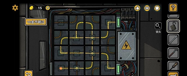 之后我们返回配电室门口的区域,在左下方找到工具箱,先把十字螺丝刀组装好,再用它打开箱子,取出钳子。