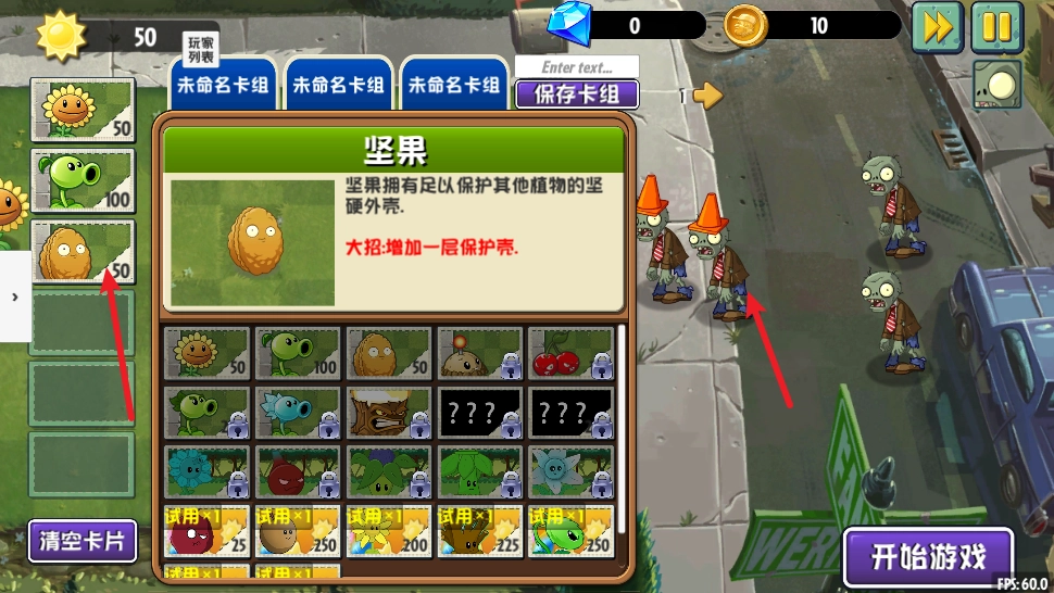 可以自由挑选植物组合来闯关,每一关都能选择不同的难度进行挑战,十分有趣。