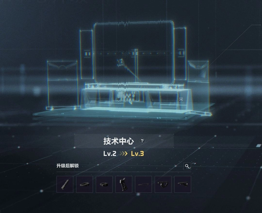 技术中心具备武器配件的制造与生产能力,随着升级进程的推进,能够解锁更多更高阶的配件图纸。