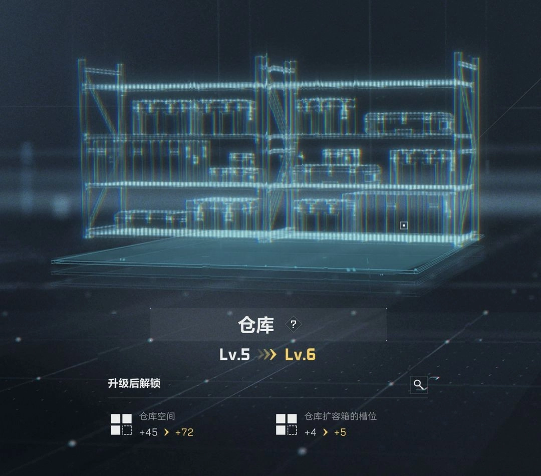 仓库是干员存放物资的场所,升级后能够提升仓库容量与扩容箱槽位,便于干员储备更多物资。