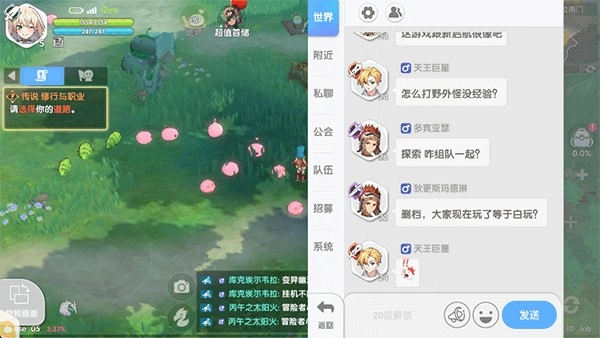点击下方的聊天框,就能和其他玩家互动、组队,还能加入公会。