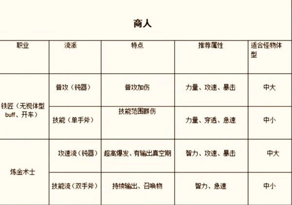 炼金主要依赖高数值的普通攻击输出伤害,药剂强化带来的加成更让其输出效果极为夸张,不过它的短板在于攻击距离较短,很容易陷入需要承受伤害的局面;铁匠则需要耗费大量zeny才能打出高额输出,只要拥有足够的资金支持,其爆发能力就会非常突出,是一个上限相当高的职业选择。