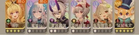 主角团成员之间的羁绊非常深厚,几乎所有角色在游戏初期就能获得。即便不购买蜜雪儿的6R礼包,第三天也能免费得到她,而且还能把她加入心愿单。除非你是那种投入极多的氪金玩家,否则几天内主角团的战力绝对是你所有队伍中最高、最强的,同时也完全符合队伍的构建配置。这个阶段的队伍核心是兔兔和鼠鼠,按照常规方式培养的话,主要资源肯定要倾斜给菖蒲和蜜雪儿,格蕾丝则需要往肉盾方向发展,剩下的三个角色随便培养一下就行,整体养成成本很低。不过因为有心悦单的存在,你另一个放入心愿单的角色,肯定得是之后队伍的核心之一。低星级的SSR角色其实不如高星级的SR和R角色好用,你可以通过角色上场后战力的变化来判断到底该上SSR还是SR、R角色。