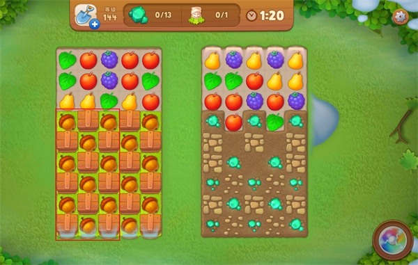 当三个颜色相同的图标连成一条直线时,它们就会被消除。完成关卡目标后,剩下的步数或许会触发特效,进而得到金币奖励。