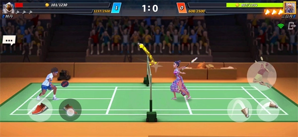 两键控制位移,两键操作击球,一键触发暴扣!全方位的移动击球设计,不仅考验灵活的走位技巧,更需要运用智慧来应战!比赛中还有体力条机制,需要灵活施展羽毛球战术,从而压制对手!