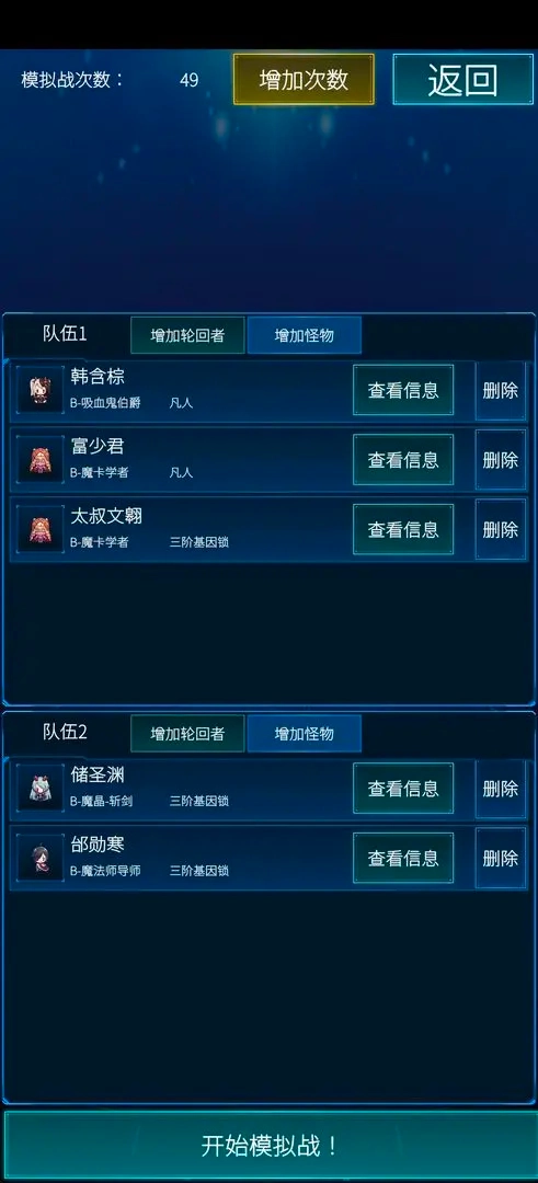 《主神模拟器2》以经典无限流小说为背景,打造了一个充满未知与可能的主神空间模拟体验。在这里,你将化身掌控命运的主神,通过培养、引导和观察不同角色的人生轨迹,探寻命运的无常与人生的真谛。游戏中,玩家可以通过多种方式强化队伍、改变成员的技能与命运走向,让剧情发展充满意想不到的转折!如果你对这类题材感兴趣,不妨来亲自体验一番!