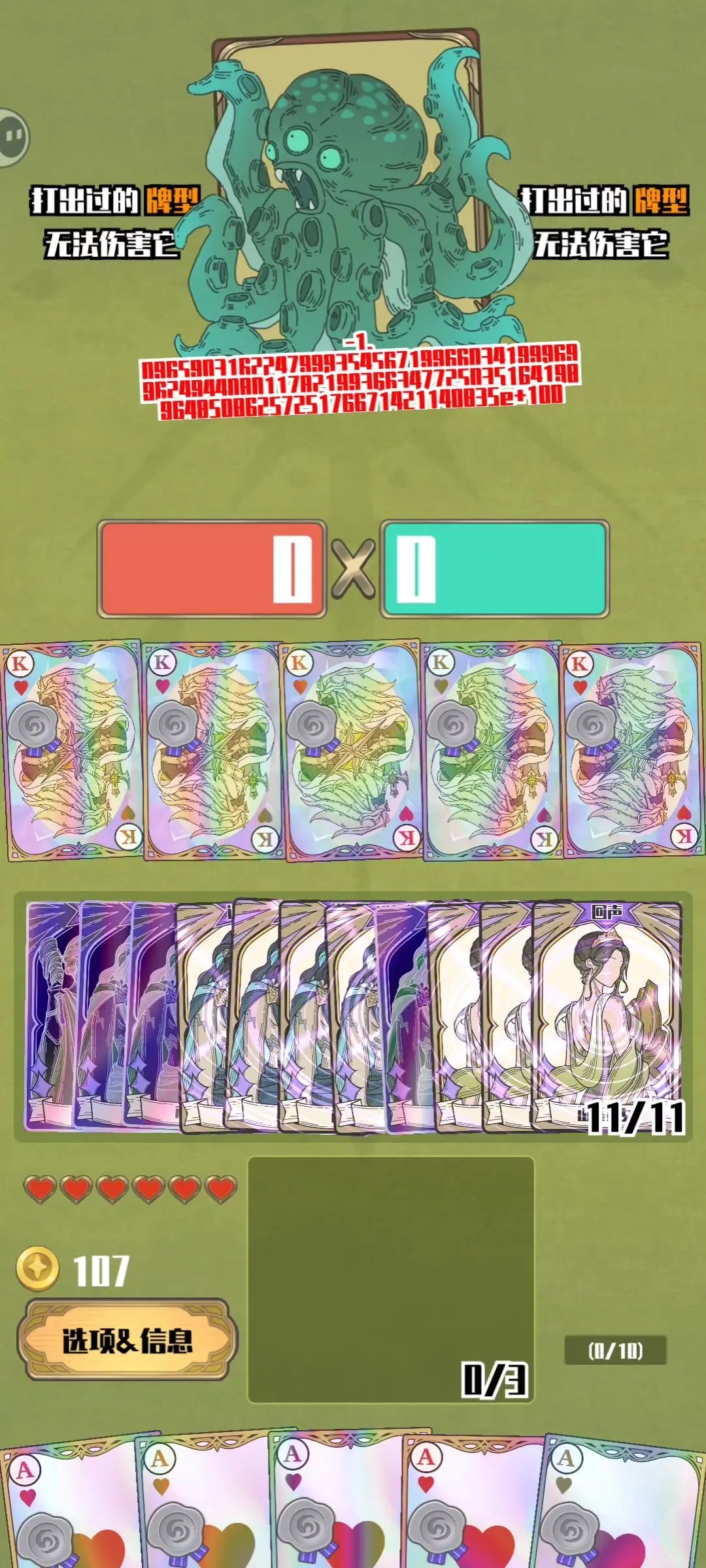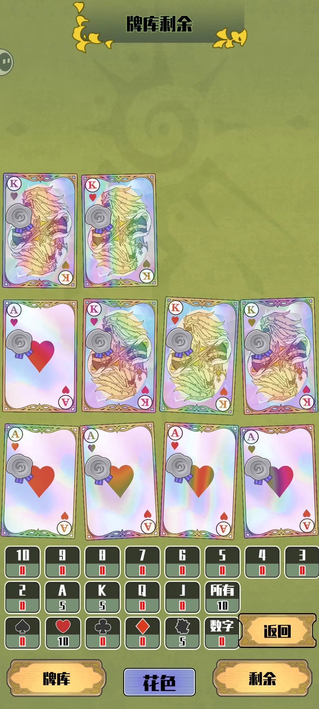 手牌【共10张】:5张红桃宝石回响辐射卡(优先选择A卡或人头卡)+5张珍珠回响辐射卡