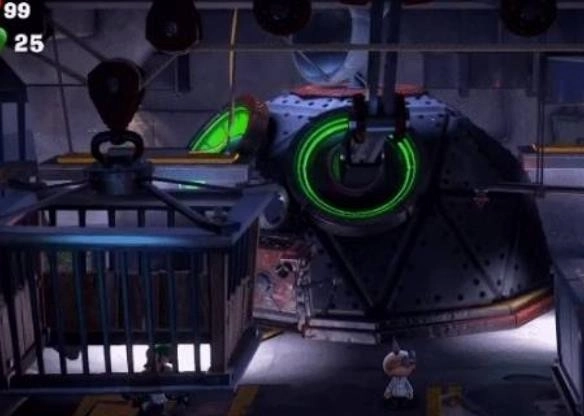 第5层其实可以看作新手引导关卡,路易吉的救援步骤是这样的:先操控傀儡路易吉移动到阀门位置,用吸尘器把牢笼吸起来,并且要一直按住吸尘器别松开,接着切换到路易吉本体,操控他从牢笼里出来就能通关了。要注意的是,傀儡路易吉是不能接触水的哦。
