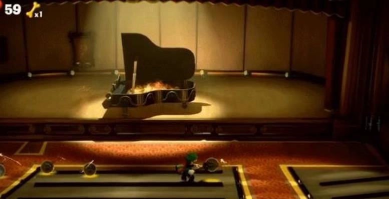 从第四层开始遇到的钢琴Boss,难度会稍微上升一些。具体的应对方法可以参考图示:当Boss抛出炸弹时,借助吸尘器把炸弹反向丢回钢琴里,接着用塞子将钢琴拽倒在地,此时Boss的真身就会显现,最后使用照射技能进行吸取就能完成挑战了。