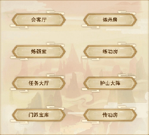 每个按钮图标都对应着门派里的各类建筑,你可以根据自身需求进入不同建筑开展活动。