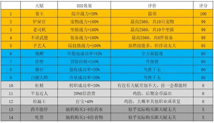 最理想的天赋组合是卷王3s+吃货3s+药不能停3S,绝对不能出现平亿近人,其他天赋可以随意搭配。如果追求效率的话,建议卷王3S加上吃货和药不能停都达到2s以上就足够了,因为要刷出全部3S天赋会让所需时间呈指数级增长。平亿近人这个天赋会把英雄的钱变成你的钱,我们要坚决对这种类似资本家的行为说不。