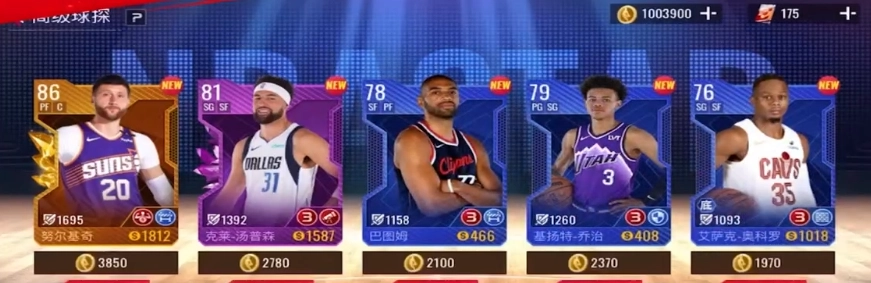 高级选秀和普通选秀每日均有3次参与机会。在初期构建球队阵容阶段,建议优先考虑参与高级选秀。可以用免费获取的钻石在商城兑换高级选秀卡,每次进行高级选秀时能够一次性挑选5名球员。