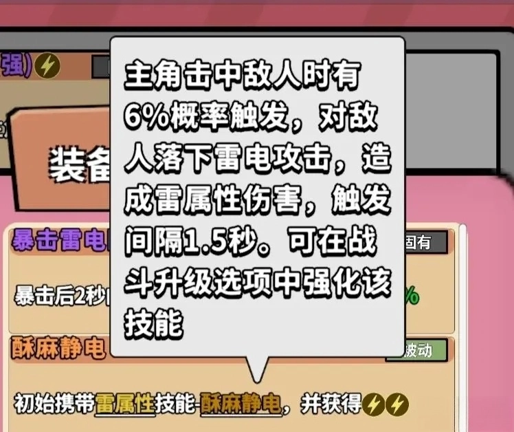 玩法思路:优先升级球状闪电技能,之后获取金币时优先提升攻击属性,其次是暴击属性,再之后是酥麻静电技能,最后考虑其他伤害加成属性。