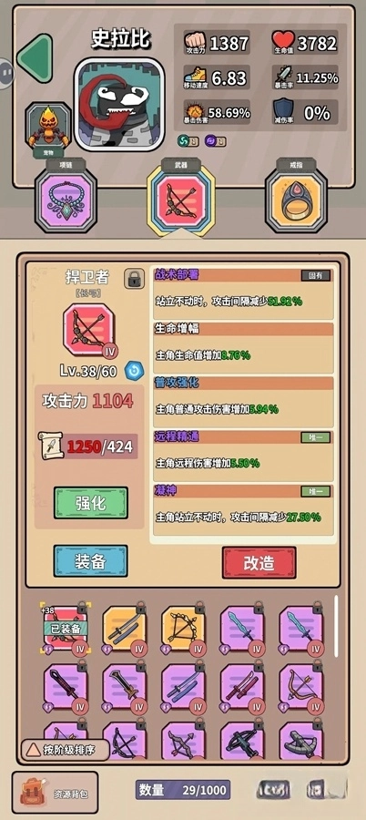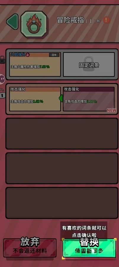 装备培养方面:重置硬币的数量是比较充足的,装备强化没有太多限制,随时都能重置养成状态,强化和进阶时消耗的材料也会完整返还。依靠塔的帮助能够通过目前所有的主线关卡(困难7-3关卡仅限炮塔的情况除外),装备不用特意去追求特定类型,有什么就用什么就可以了,不必急于去打造装备。点击装备右上角的感叹号,就能查看当前武器对应的词条池。