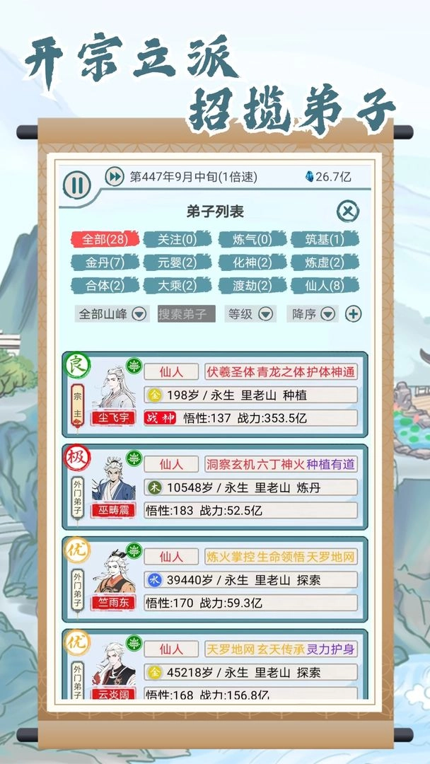 玩家已有弟子达到仙人境界