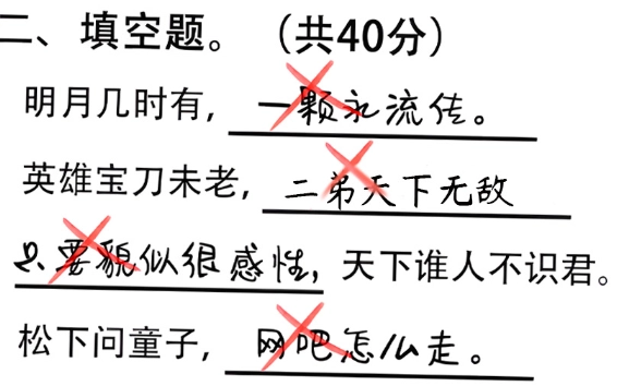有些学生的字迹歪歪扭扭,还有些学生的答案藏在细节之中,得睁大眼睛仔细查看才行。
