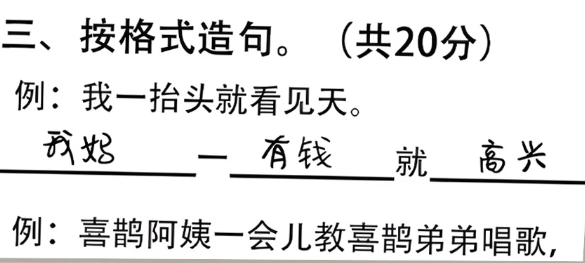 玩家需要根据给出的例句,按照格式造句。