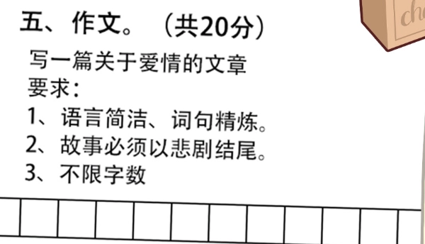 作文要求语言简洁、词句精炼,故事需以悲剧收尾,字数不限。