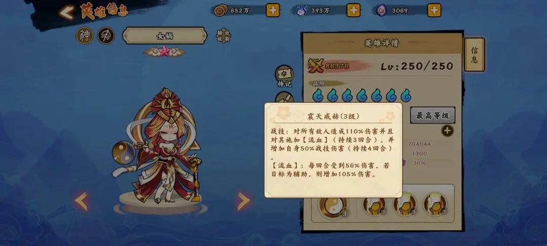 大招震天威赫:能给所有敌人挂上流血状态。单论女娲的单体能力其实不算强力,但要是和虞姬搭配起来,绝对会成为所有敌人的噩梦。女娲的速度属性本身就很高,加上被动还能进一步提升自身速度,只要能赶在虞姬释放大招之前先把自己的大招放出来就行。