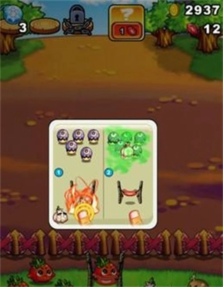 第二章第三关:要是没办法确保打击的精准度,除了继续采用南瓜搭配辣椒的组合外,还得配合使用道具。我建议优先选择炸弹,要是钻石数量充足的话,选高阶道具会更合适,像龙卷风就不错。关卡临近结束时,会有一大群贪吃熊集体发起进攻,单靠南瓜和辣椒会有些吃力,这时候用炮弹轰炸一下,就能化解危机。